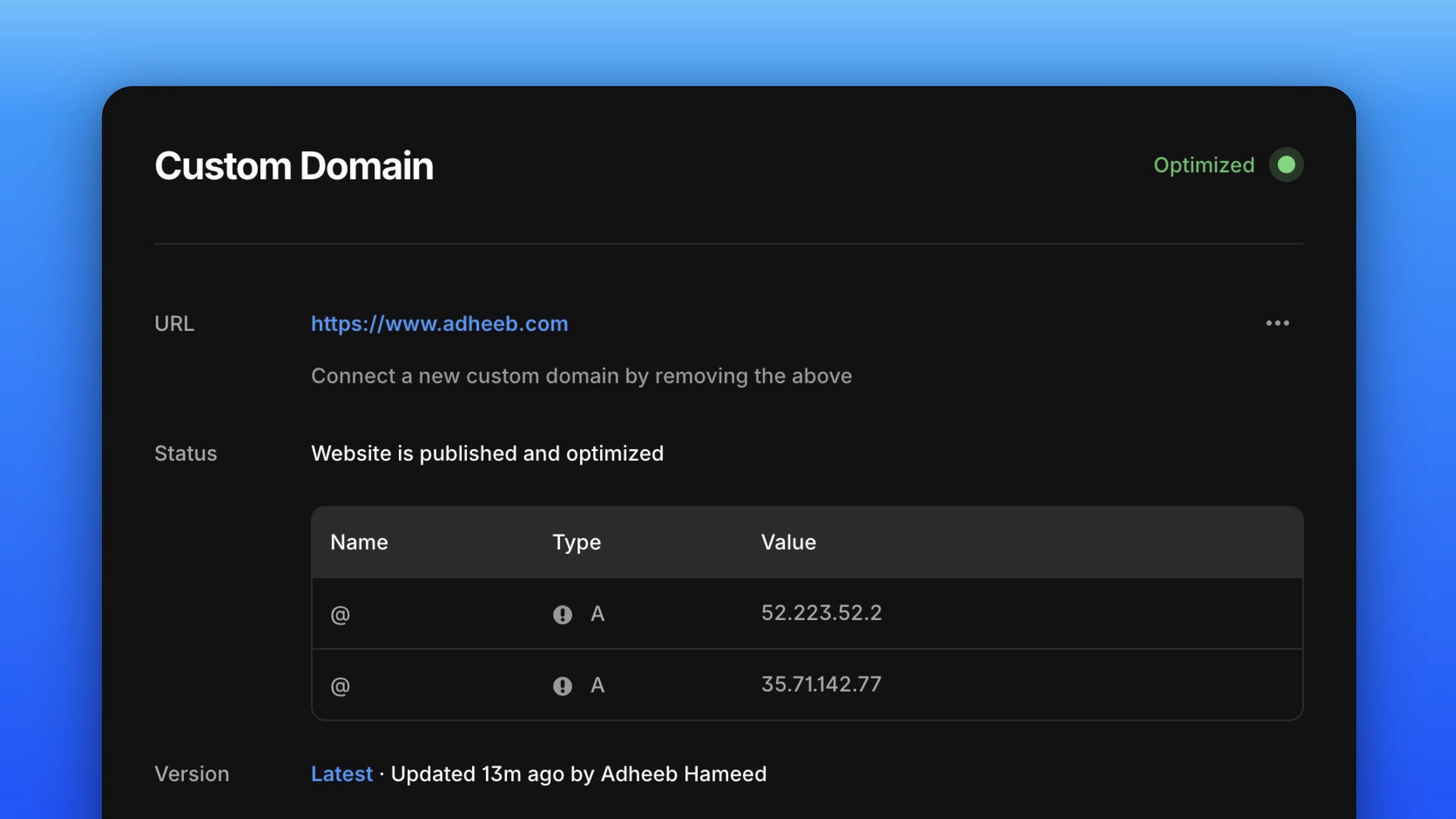 Next up you need to add the A Record and CNAME Record to your domain provider