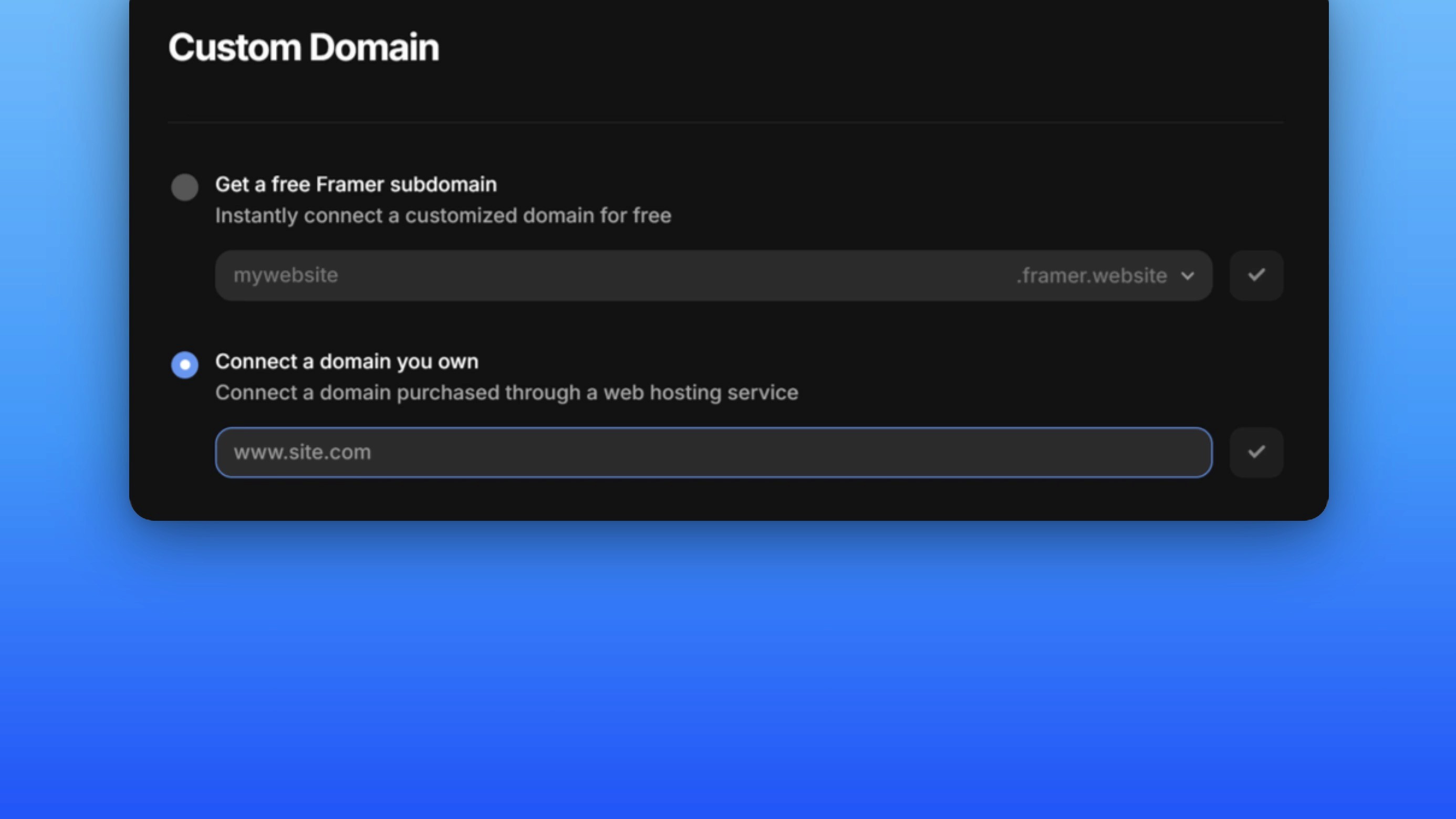 You have to pick a framer plan to be able to connect your custom domain and remove the framer badging on your site.