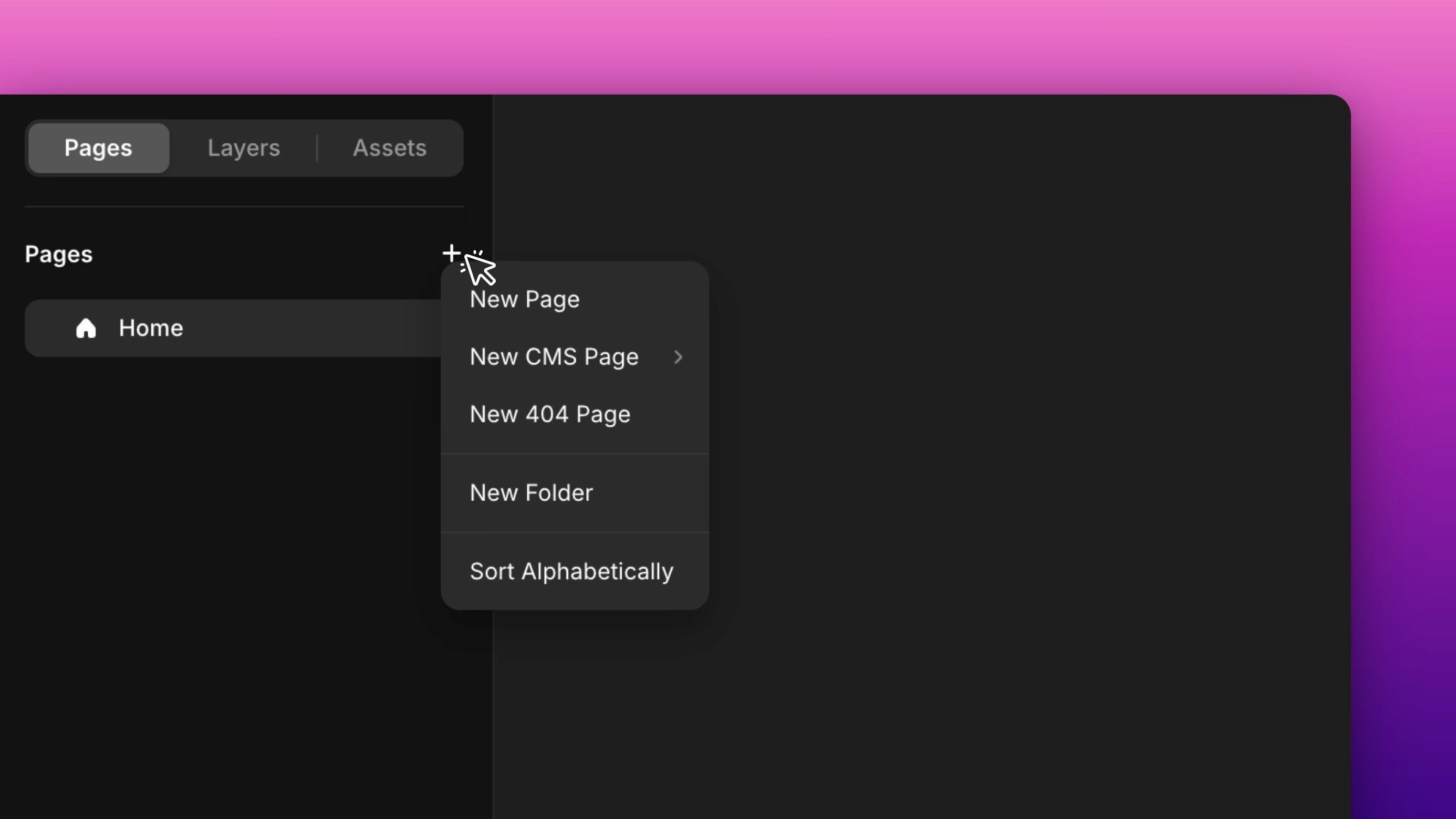 On the left hand panel of the screen, click on pages and then click + Add Page