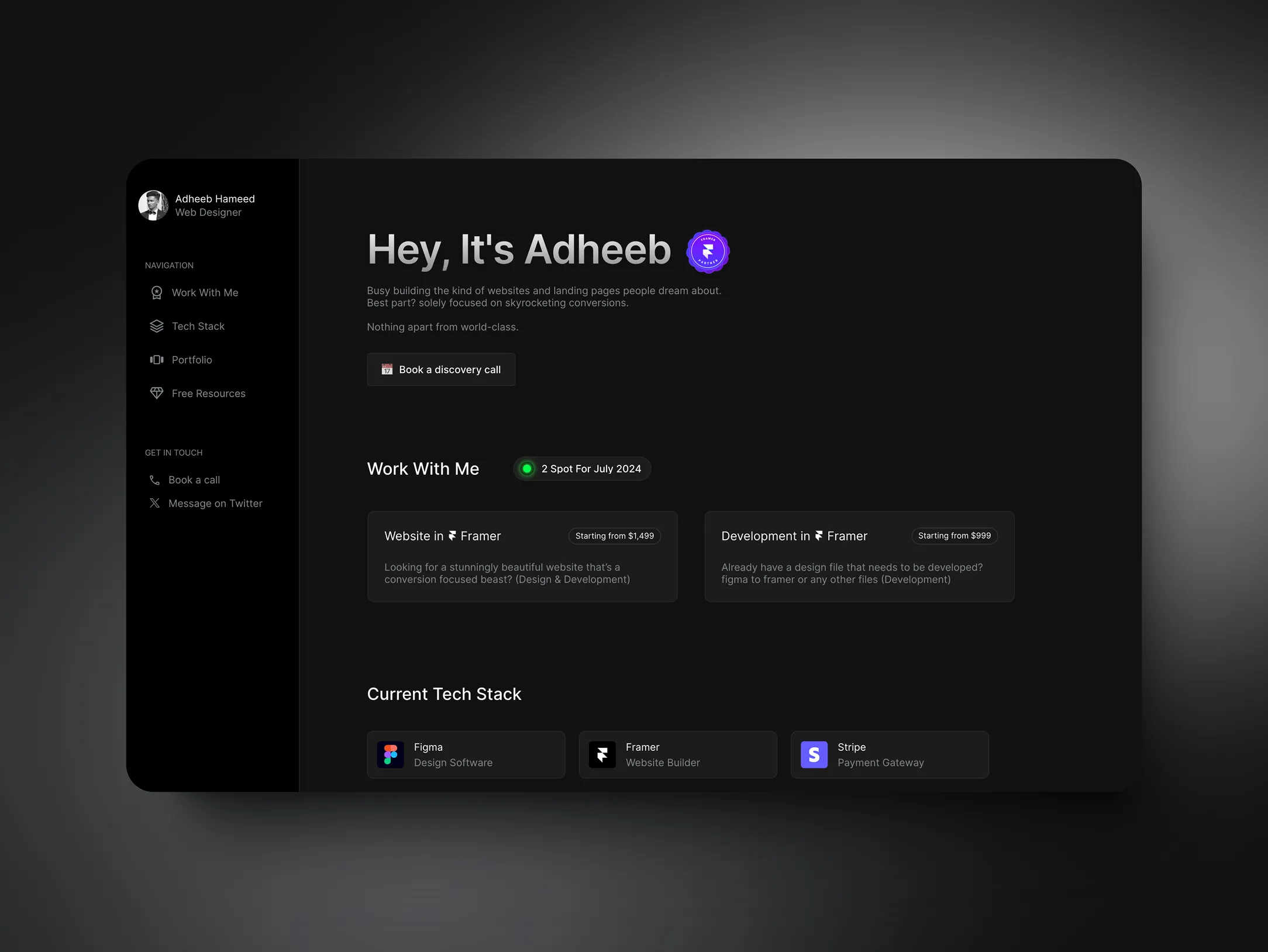Simple modern looking portfolio page with all the necessary features for creators looking to leave a mark.
