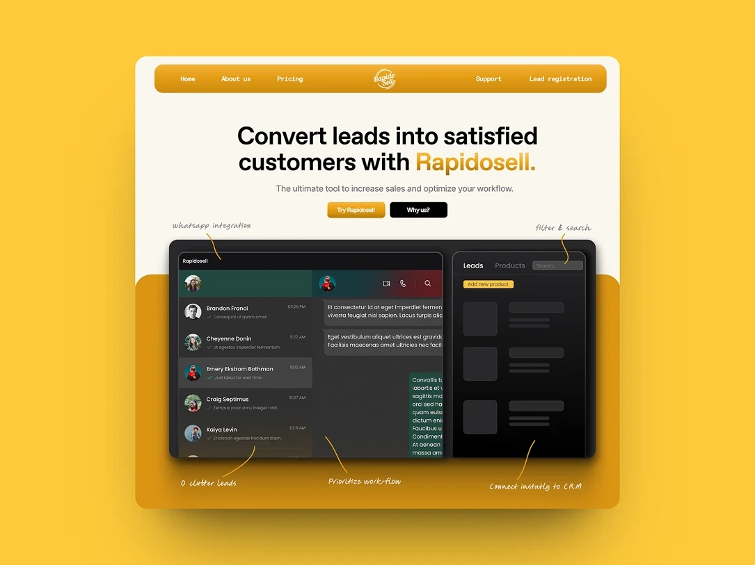Landing page redesign for a SaaS. Rapidosell helps companies increases their sales and optimize their sales workflows.